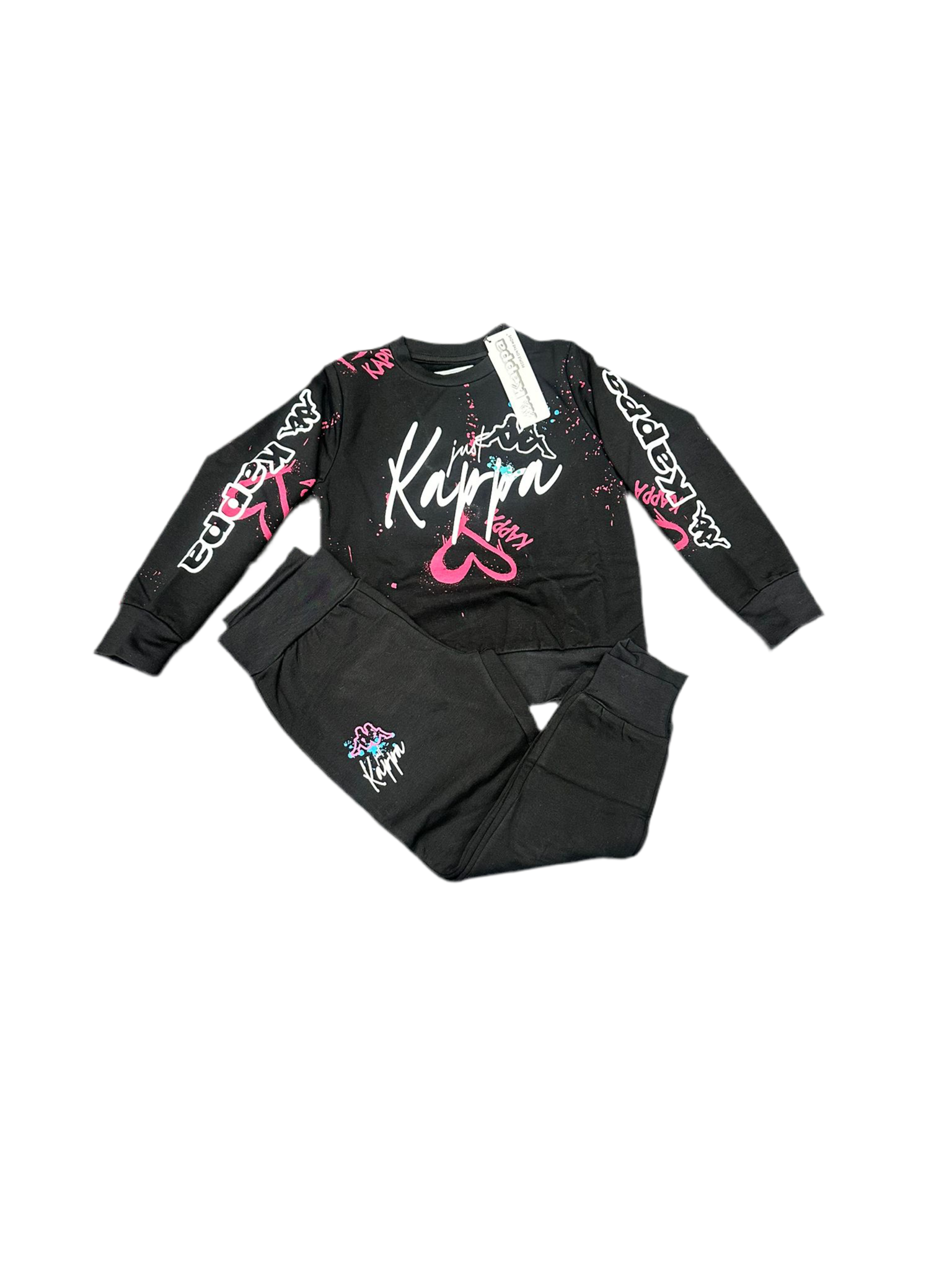 TUTA KAPPA BIMBA FELPATA SCRITTA CENTRALE STAMPATA E SCHIZZI COLORATI