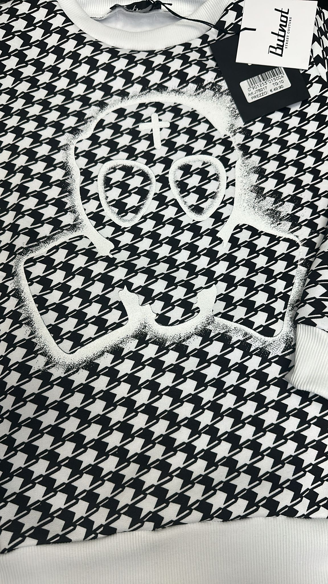FELPA BUTNOT BAMBINO FELPATA TESCHIO BIANCO CENTRALE STAMPA ROMBI