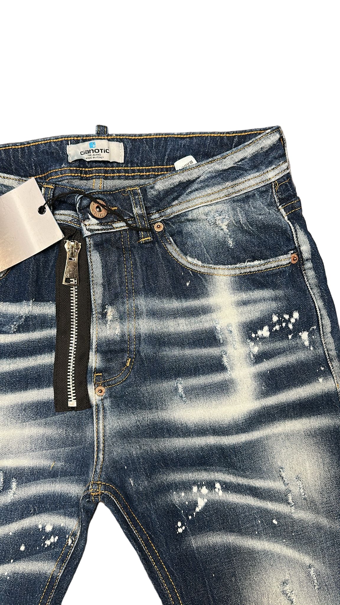 JEANS CIANOTIC UOMO SLIM CON CERNIERA , BOTTONI E SCHIZZI BIANCHI