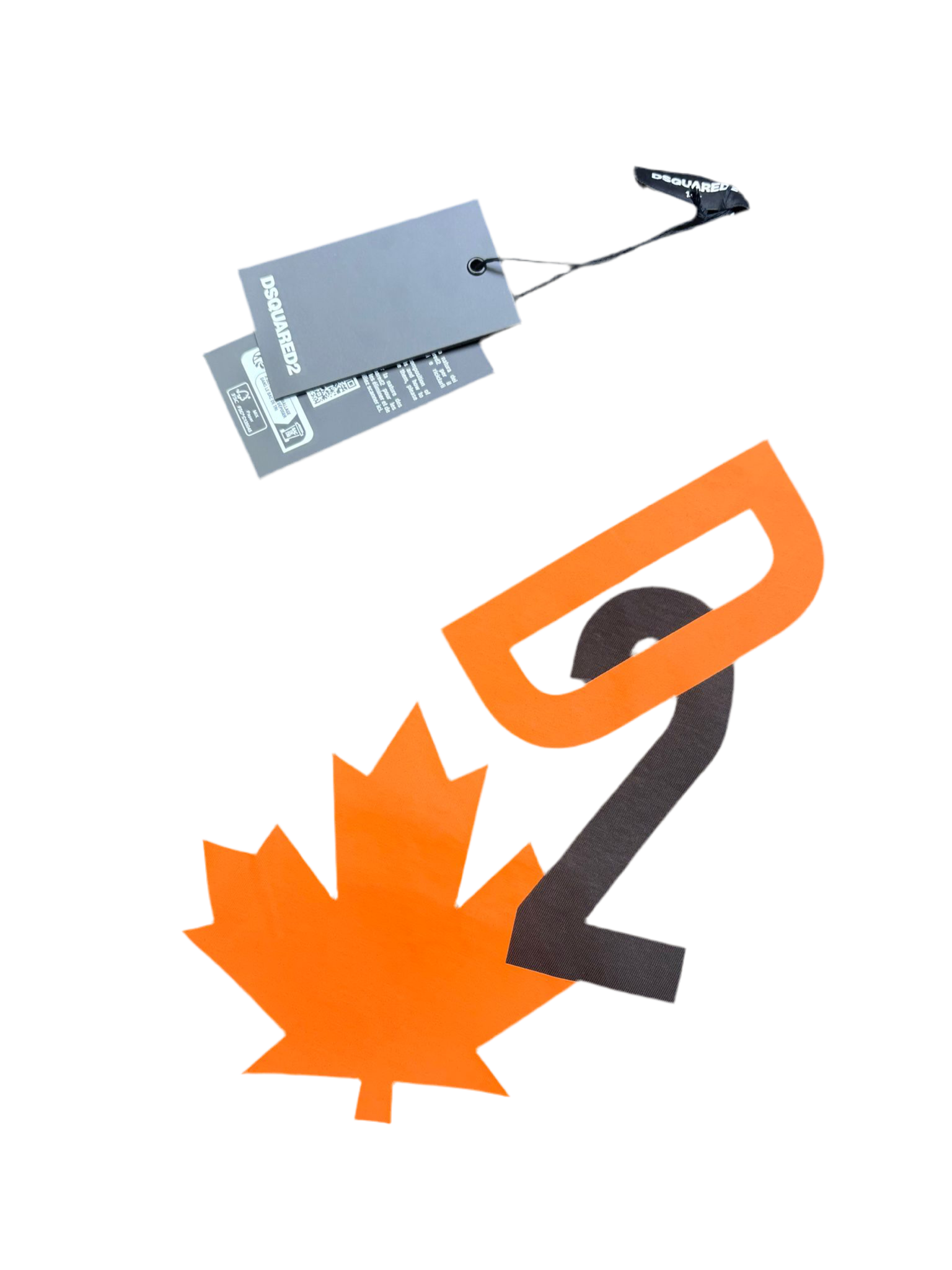 T-SHIRT DSQUARED FOGLIA E INIZIALI LATO CUORE ARANCIONE