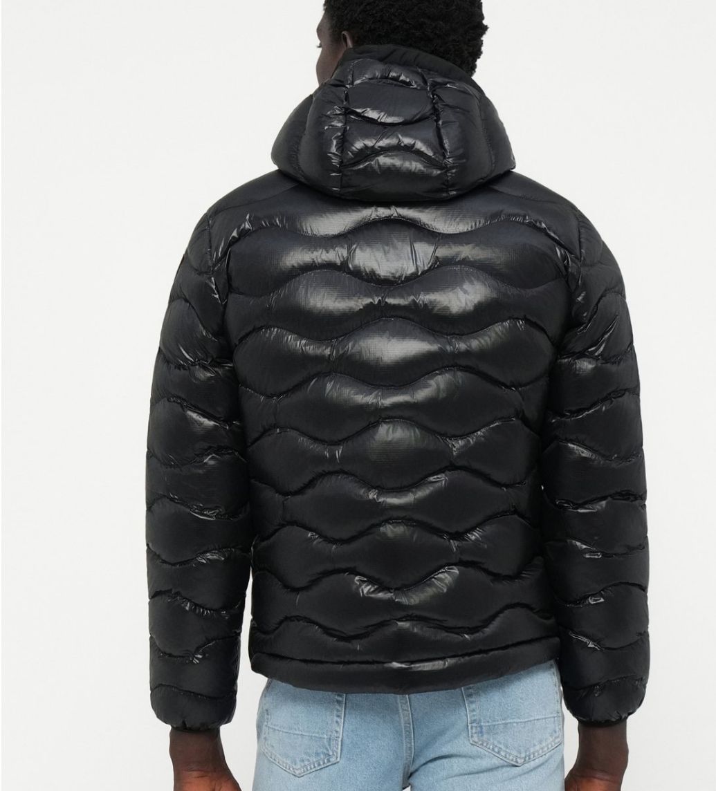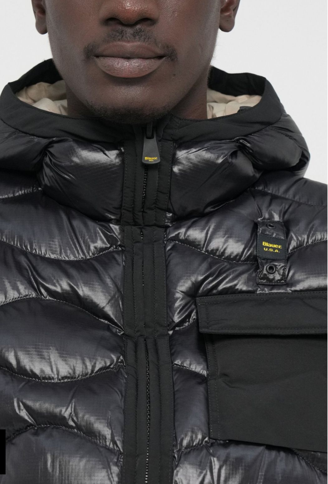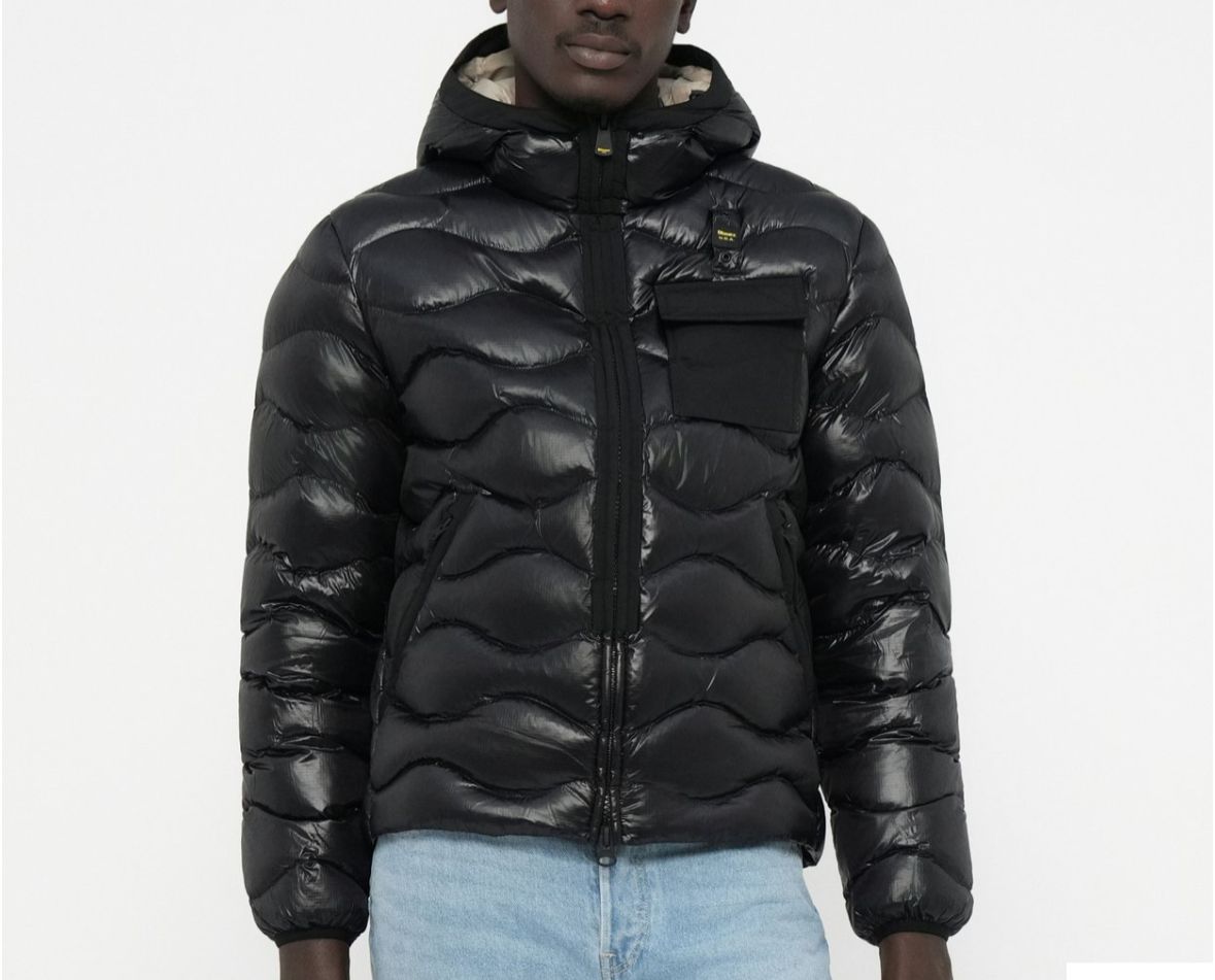 GIUBBINO BLAUER UOMO PIUMINO  A ONDA CON LOGO NERO E TASCA LATO CUORE