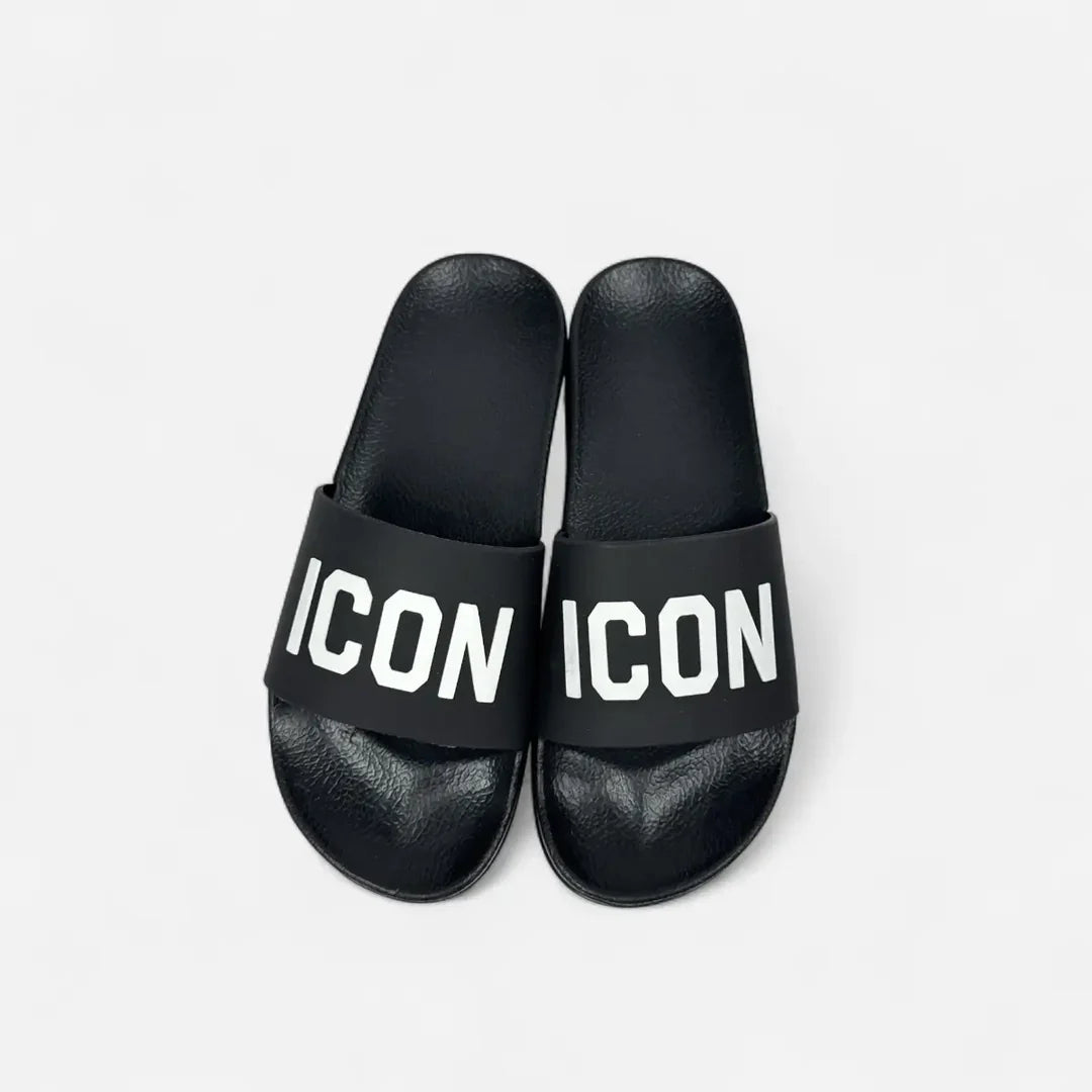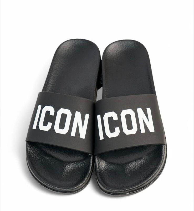 CIABATTE ICON GOMMA CON FASCIA E SCRITTA BIANCA STAMPATA