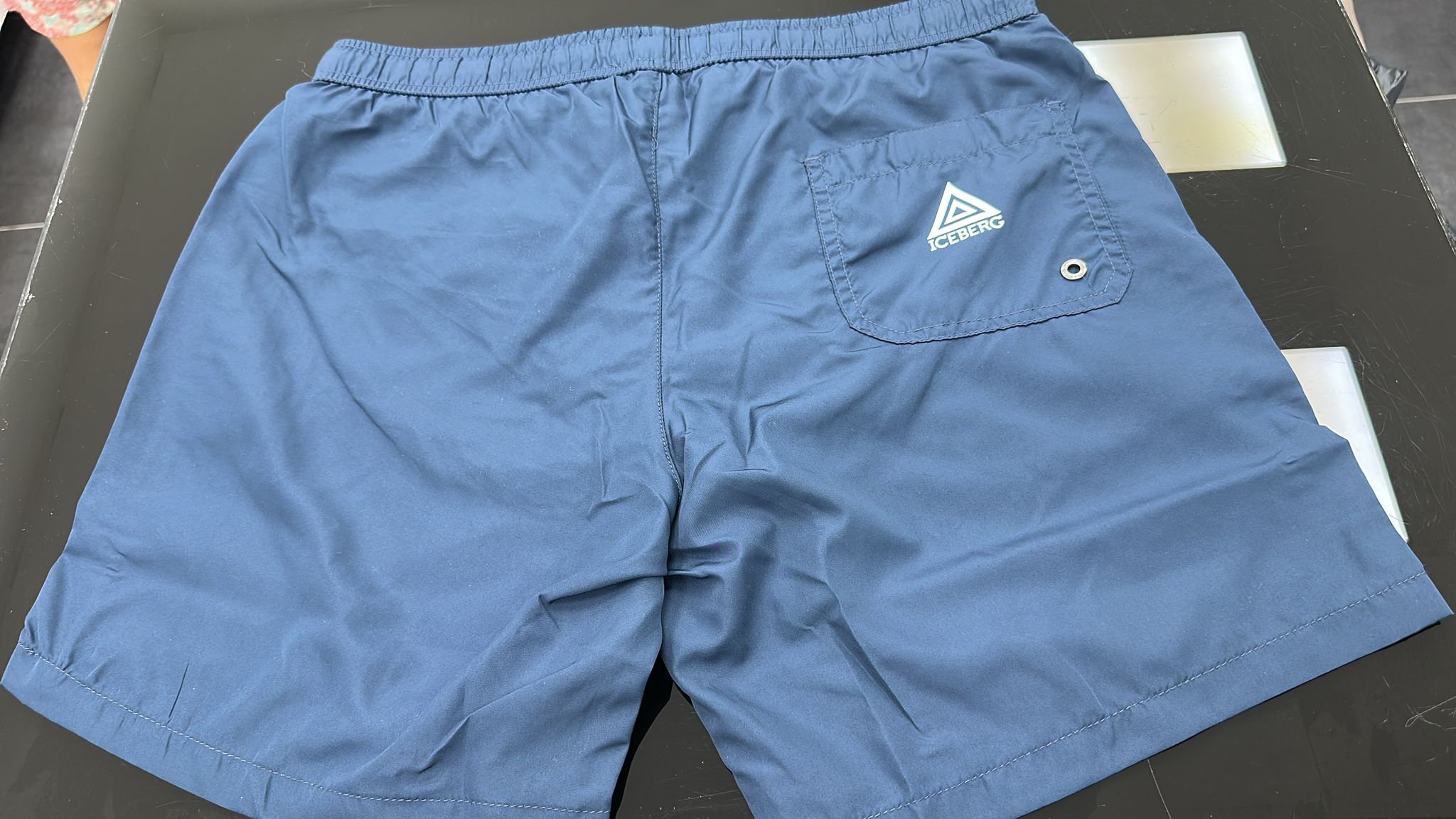 COSTUME ICEBERG CON LOGO GAMBA VERTICALE CON STRISCIA BIANCO E GIALLO