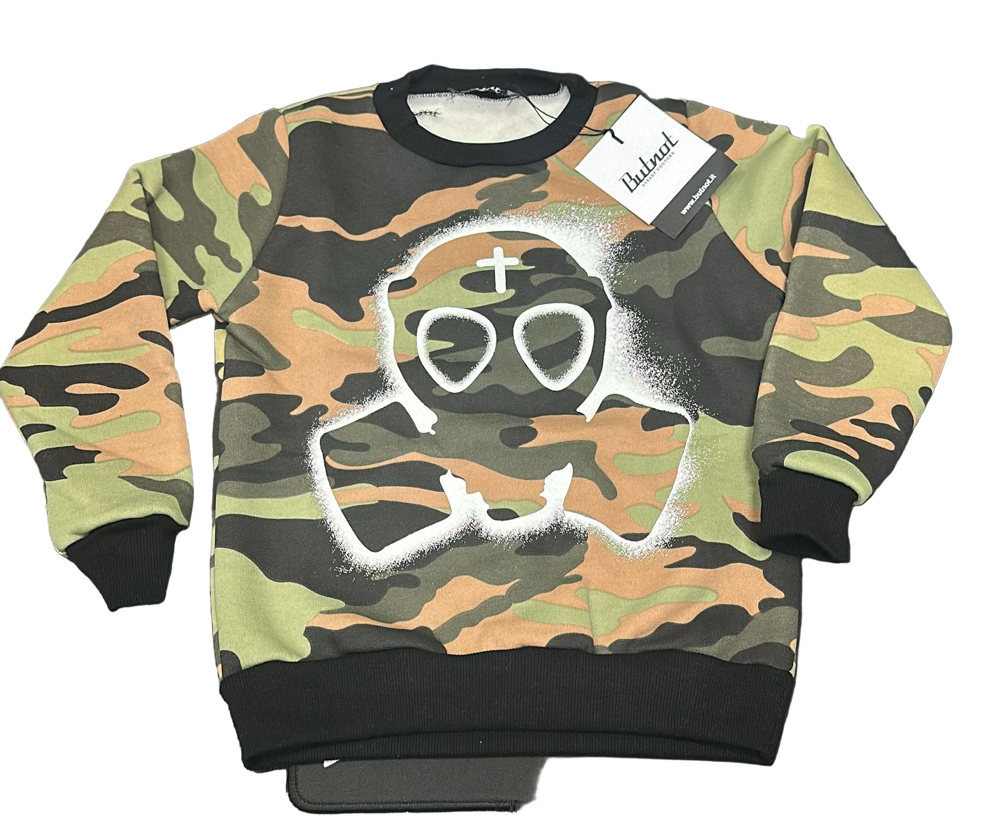 FELPA BUTNOT BAMBINO FELPATA STAMPA MILITARE CON TESCHIO CENTRALE