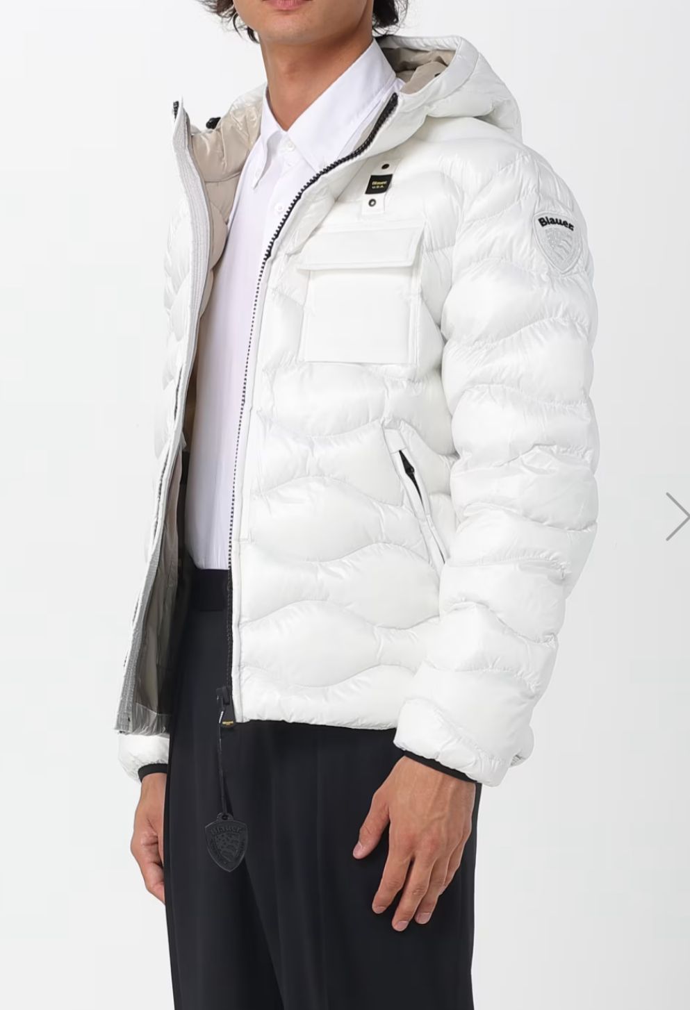 GIUBBINO BLAUER UOMO PIUMINO  A ONDA CON LOGO BIANCO E TASCA LATO CUORE