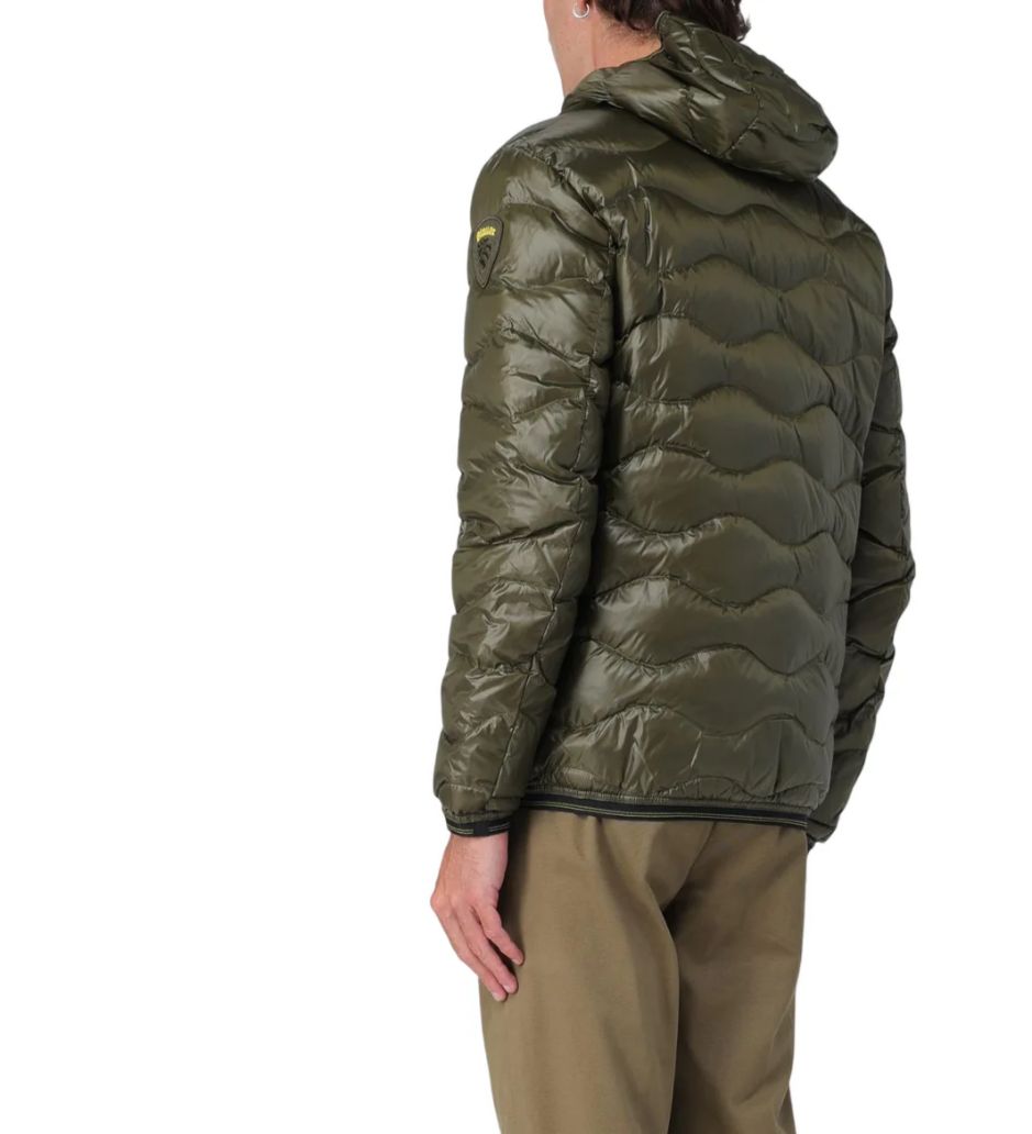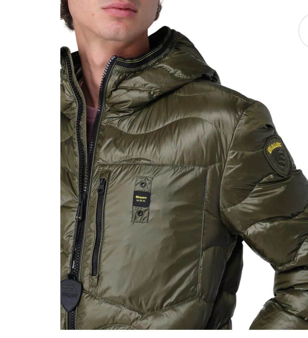 GIUBBINO BLAUER LUCINO ONDA UOMO PIUMINO CON LOGO E SCRITTA FLUO E CERNIERA TRASVERSALE LATO CUORE