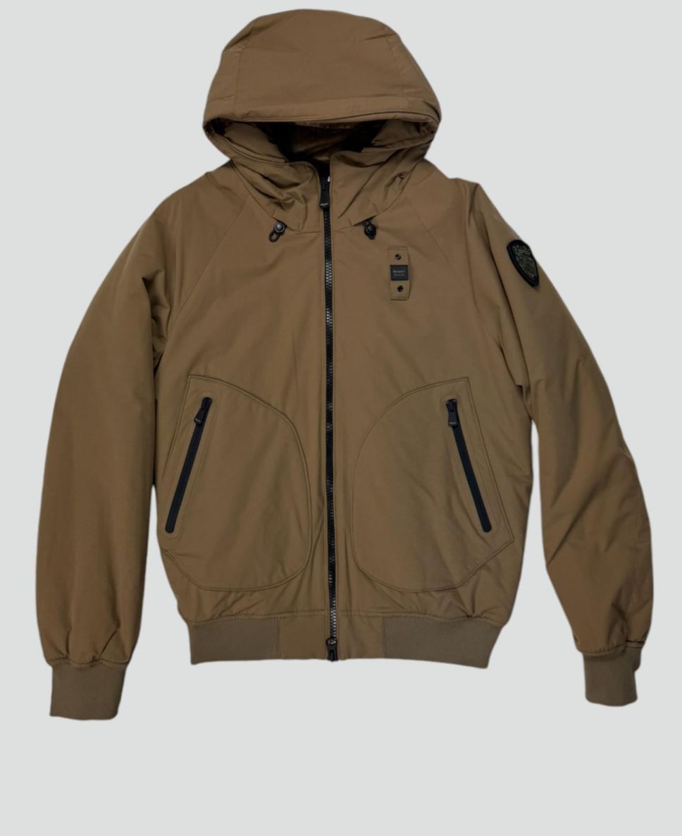 GIUBBINO BLAUER UOMO PIUMINO LISCIO CON POLSINI , CAPPUCCIO E LOGO BRACCIO VERDE MILITARE