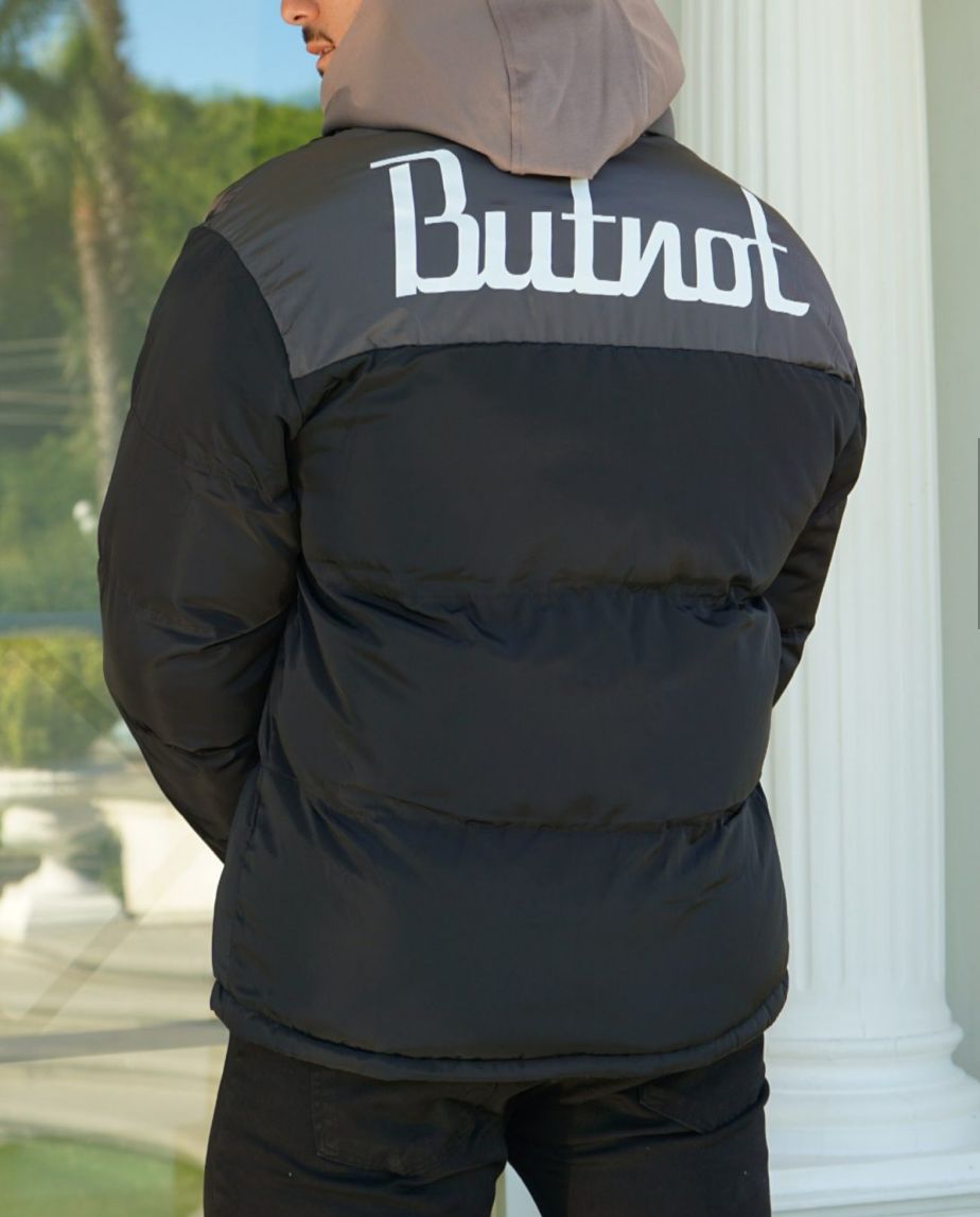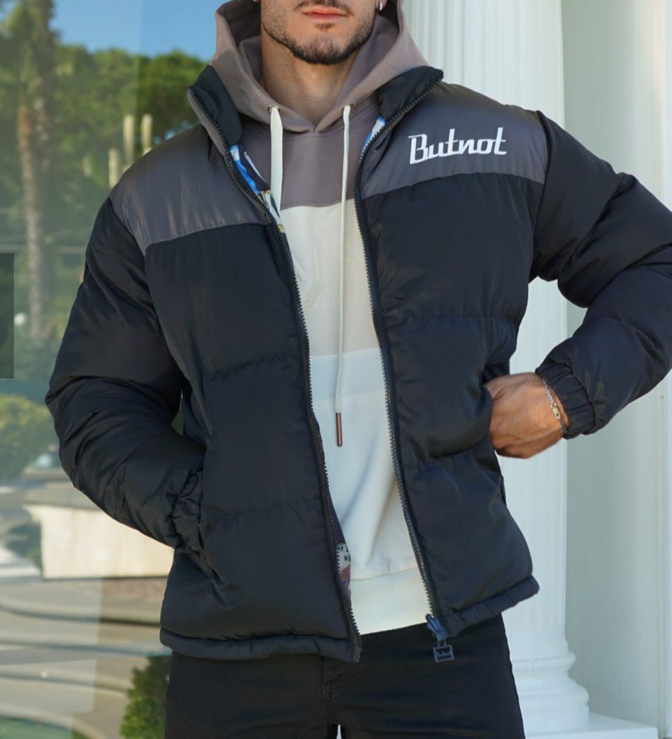 GIUBBINO BUTNOT UOMO PIUMINO CON BANDA NERA SCRITTA LATO CUORE E SPALLE
