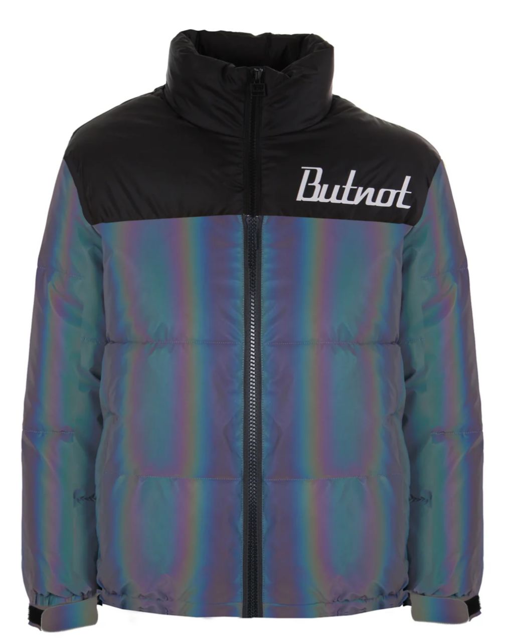 GIUBBINO BUTNOT UOMO PIUMINO CON BANDA NERA SCRITTA LATO CUORE E SPALLE CATERINFRANGENTE
