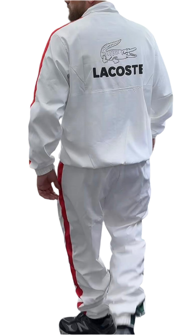 TUTA COMPLETA LACOSTE UNISEX MICROFIBRA CON BANDE LATERALI COLORATE E LOGO GRANDE RETRO