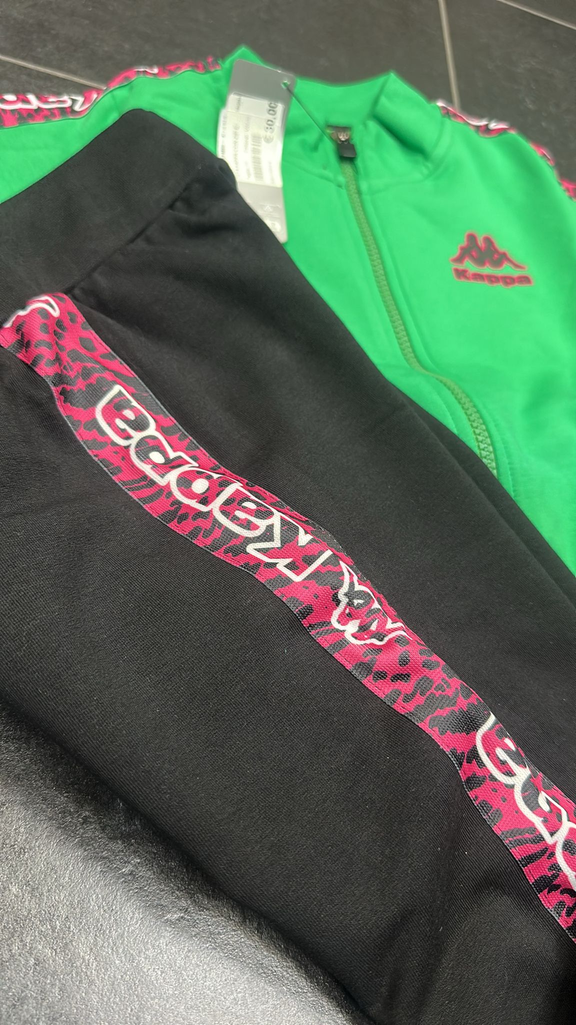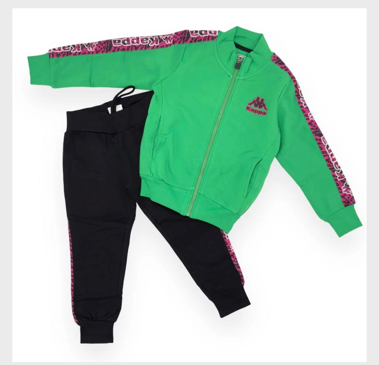 TUTA KAPPA BIMBA FELPATA CON ZIP E LOGO GOMMA LATO CUORE E LEOPARDATO SPALLA
